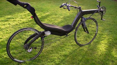 | Keywords: M5 Carbon High Racer.jpg en M5 Carbon High Racer displaying the right and rear side The frame is constructed using carbon fibers The recumbent bicycle has 28 700C wheels 2012-01-15 14 50 37 own Johnh cc-zero Uploaded with UploadWizard Recumbent bicycles Carbon fibres |