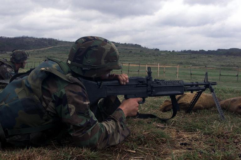 | Keywords: M60 machine gun DF-SD-02-01164.jpg  US Air Force Airman Scott Paneton US Air Forces in Europe armed with an M60 machine gun focuses on an enemy target during DEFENDER CHALLENGE 2000 at Lackland Air Force Base Texas Defender Challenge is the annual Air Force wide competition sponsored by Air Force Security Forces This competition showcases the talents and capabilities of 13 international Security Forces teams in 24 events over six days Location LACKLAND AIR FORCE BASE TEXAS TX UNITED STATES OF AMERICA USA Camera Operator SRA JEANETTE COPELAND USAF Date Shot 1 Nov 2000 source http //www dodmedia osd mil/DVIC_View/Still_Details cfm SDAN DFSD0201164 JPGPath /Assets/Still/2002/Air_Force/DF-SD-02-01164 JPG PD-USGov M60 machine gun United States Air Force Security Forces Lackland Air Force Base Defender Challenge |