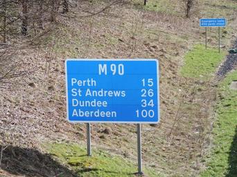Keywords: m90 sign milnathort kinross perth perthshire st andrews rural landscape scenery travel dry tourism