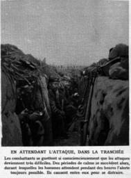 | Keywords: M 57 5 les abris dans la tranché.jpg fr Le magasine Le Miroir publie cette photographie d'une tranchée de première ligne en 1914 Le Miroir n°57 page 5 photographe de presse inconnu dimanche 27_décembre 1914 PD-old Le Miroir n°57 World War I trench warfare in France |