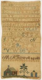 | Keywords: M. A. Tolwell - Sampler - Google Art Project.jpg Google Art Project /collection/cooper-hewitt-national-design-museum/artwork/sampler-m-a-tolwell/6835356/ 176726 M A Tolwell M 6857160 A Tolwell /artist/m-a-tolwell/12695304/ 12695304 /collection/cooper-hewitt-national-design-museum/ Cooper-Hewitt National Design Museum 3644669 http //www cooperhewitt org/ /collection/cooper-hewitt-national-design-museum/artwork/sampler-m-a-tolwell/6835356/ H x W 33 7 x 17 8 cm 13 1/4 x 7 in 1800 19th century Medium silk embroidery on cotton foundationTechnique embroidered in cross and marking cross stitches on plain weave foundation By 19 American Art Galleries19 - 1981 Gertrude M Oppenheimer1981 Cooper-Hewitt Museum 335 6835356 false M A Tolwell aged 8 1899 Medium silk embroidery on cotton foundationTechnique embroidered in cross and marking cross stitches on plain weave foundation 1981-28-143 http //collection cooperhewitt org/view/objects/asitem/id/176726 Bequest of Gertrude M Oppenheimer Sampler 1800 1900 w180 x h335 cm 19th century false 0 529296875 By 19 American Art Galleries19 - 1981 Gertrude M Oppenheimer1981 Cooper-Hewitt Museum Object sampler-m-a-tolwell Sampler s 180 PD-art PD-old-70-1923 Original upload log page en wikipedia M +A +Tolwell+-+Sampler+-+Google+Art+Project jpg wikitable - 2013-01-27 10 06 04 1590× 3001× Dcoetzee Google Art Project artist_fi - Uploaded with MTC Embroidered objects Latin alphabet charts |