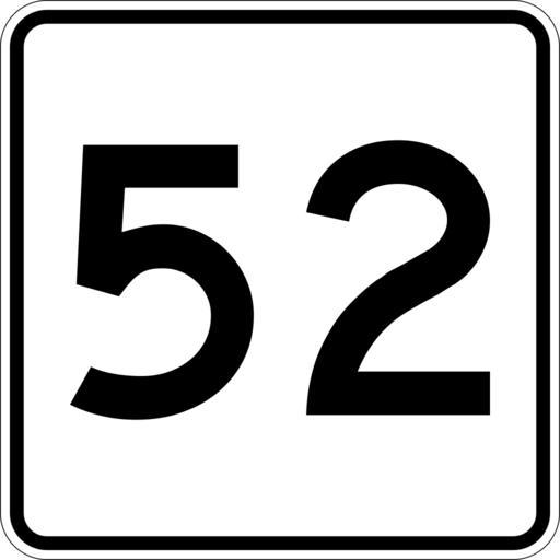| Keywords: MA Route 52.svg 600 mm by 600 mm 24 in by 24 in Massachusetts Route shield made to the specifications of the http //166 90 180 162/mhd/downloads/manuals/1996Mconst pdf 1996 edition of Construction and Traffic Standard Details sign M1-5 Uses the http //www triskele com/fonts/index html Roadgeek 2005 fonts United States law does not permit the copyrighting of typeface designs and the fonts are meant to be copies of a U S Government-produced work anyway The outside border has a width of 1 1 mm and a color of black so it shows up; in reality signs have no outside border The specs actually do not show the curve on the outside border instead making it a perfect square but all signs I have seen round the corners own SPUI spuiother Diagrams of Massachusetts Route shields |