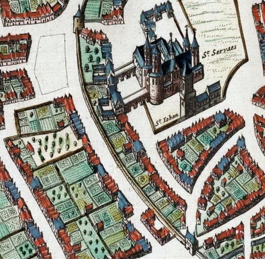 Keywords: Maastricht, omgeving Sint Servaasklooster, detail kaart Atlas Maior,1652.jpg en Maastricht the Netherlands Detail of a map of Maastricht from the Atlas Maior published by Blaeu Amsterdam 1652 showing the first Medieval city wall along Sint Servaasklooster Borchgraeve between Tweebergenpoort top left and Lenculenpoort bottom right Atlas van Loon creator Joan Blaeu 1649 other versions Custom license marker 2015 01 22 PD-100 Map of Maastricht by Willem and Johannes Blaeu 1649 First Medieval city wall of Maastricht City gates in Maastricht Uploaded with UploadWizard |