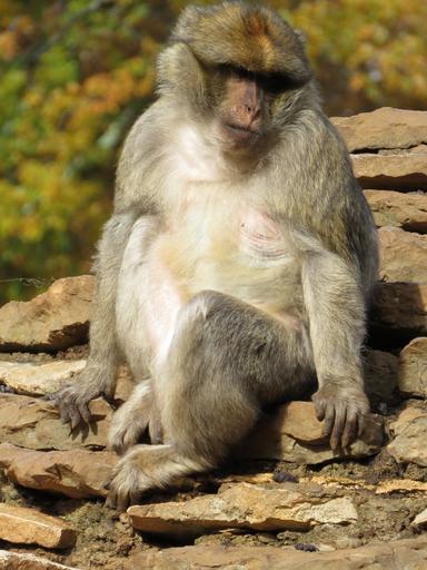 Keywords: macaque monkey zoo animal primate zoo animals natural fauna outdoors sitting
