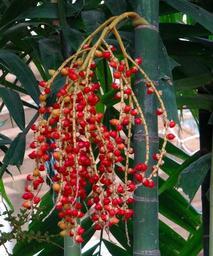 Keywords: macarthur palm ptychosperma macarthurii tree palm nuts ripe red bangalore india