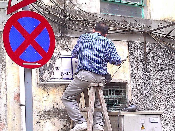 Keywords: MacauStreetSign RuaDePonteEHorta remove1999.jpg zh-hant 民政總署人員正 移除群興新街舊式街名路牌 2011-10-07 15 59 13 own Cdip150 22 11 42 51 N 113 33 1 44 E alt 0_source exif_heading cc-zero Uploaded with UploadWizard Street signs in Macau