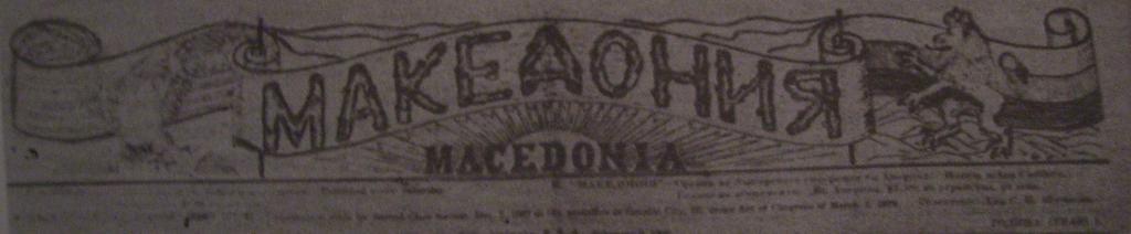 Keywords: Macedonia 1907 - 1910.JPG Вестникът акедония photocopied 1907 - 1910 editorial board PD-old Newspapers of the United States Newspaper logos Granite City Illinois Stanislav Shoomkoff