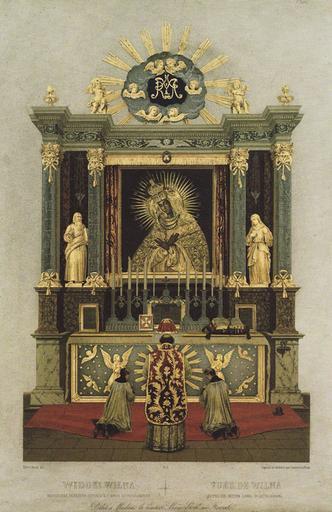 Keywords: Maci Božaja Vastrabramskaja. Маці Божая Вастрабрамская (1863).jpg Аб аз аці Божай Васт аб амскай у Вільні Jean Kasimir Wilczinski Album de Wilna Paris 1863 author century 19 PD-old Album Wileńskie Our Lady of the Gate of Dawn