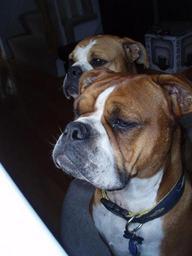 | Keywords: Macky.jpg en Brother and sister breed of the Olde English Bulldogge breed The male has a more broad short build front as the female has more slender longer build Both are around two years old in picture own Shaunmeunier date Olde English Bulldogge |