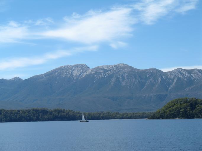 Keywords: MacquarieHarbour.JPG en A view of Mount Sorell in the West Coast Range east of Macquarie Harbour Tasmania Australia as taken from a boat in the harbour own 2006-02-16 M Murphy Public domain Macquarie Harbour West Coast Range Tasmania