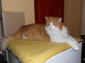 Keywords: Macskám2.jpg en My cat hu A macskám Saját kép Orosz Márk 2011-03-10 Cc-zero Unidentified cats Red tabby and white cats Lying cats Long-haired cats