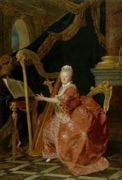 | Keywords: Madame Victoire by Aubry.jpg Artwork Creator Étienne Aubry 1773 Oil on canvas cm 263 177 Institution Versailles Chambre de Madame Adélaïde du Château de Versailles http //doudou gheerbrant com/ cat 8 paged 3 image http //berdom skyrock com/1227351454-Rez-de-chaussee-Aile-centrale-Appartement-de-madame-Adelaide-77 html info other versions PD-old-100 DEFAULTSORT 1773; Victoire of France Étienne Aubry Princess Victoire of France 18th-century portrait paintings in the Musée national du Château de Versailles Chambre de Madame Adélaïde du Château de Versailles Madame_Victoire 1773 oil on canvas paintings in France 1773 portrait paintings from France 18th-century oil portraits of sitting women at full length 18th-century portrait paintings in interiors Busts in portrait paintings Busts of Louis XV of France Chairs in portrait paintings Columns in portrait paintings Black drapery in portrait paintings Female portraits with harps Females with chokers in art Females with red dresses in art Music in 1773 Portraits with image of family member 1770s dresses Paintings of sitting women playing musical instruments indoors |