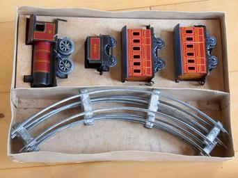Keywords: Made in Germany Tin clockwork toy train from around 1900 pic-005.JPG Made in Germany Tin clockwork toy train from around 1900 in its box own 2012-10-14 14 26 52 AlfvanBeem CC-zero Tin toy trains Toys from Germany Nostalgia by Alf van Beem