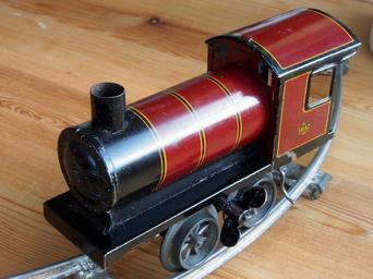 Keywords: Made in Germany Tin clockwork toy train from around 1900 pic-007.JPG Made in Germany Tin clockwork toy train from around 1900 own 2012-10-14 14 31 04 AlfvanBeem CC-zero Tin toy trains Toys from Germany Nostalgia by Alf van Beem