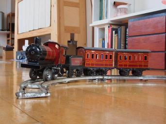 Keywords: Made in Germany Tin clockwork toy train from around 1900 pic-018.JPG Made in Germany Tin clockwork toy train from around 1900 own 2012-10-14 14 54 39 AlfvanBeem CC-zero Tin toy trains Toys from Germany Nostalgia by Alf van Beem