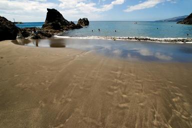 Keywords: madeira sand beach rock water reflection atlantic horizon