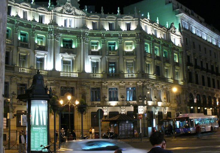 Keywords: Madrid denoche.JPG Night view of the former Banco Hispano Americano now Santander building at the Plaza de Canalejas square in Madrid Spain Projected in 1902 by Eduardo de Adaro Magro and built from 1902 to 1905 Vista nocturna de la antigua sede del Banco Hispano Americano y actualmente Santander en la Plaza de Canalejas de Madrid EspaƱa Proyectado en 1902 por Eduardo de Adaro Magro y construido de 1902 a 1905 2006-04-09 own assumed Kett~commonswiki Source / Origen Taken April 2006 by Kett 1360x2048 px Banco Hispano Americano building 1905 Madrid Illuminated buildings in Madrid April 2006 in Spain |