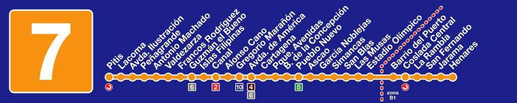 | Keywords: Madrid Metro Line7.svg en wikipedia 2006-12-06 Benedicto16 wikipedia en Benedicto16 original upload log page en wikipedia Madrid_Metro_Line7 svg 2007-05-05 15 00 Benedicto16 1417×283×0 617897 bytes <nowiki></nowiki> 2007-05-05 14 47 Benedicto16 1417×283×0 616824 bytes <nowiki></nowiki> 2007-02-04 14 02 Benedicto16 1417×283×0 1023817 bytes <nowiki>Getting ready for new stations Estadio Olímpico - Hospital del Henares and for non-opened station Arroyo del Fresno between Lacoma and Pitis </nowiki> 2006-12-06 15 22 Benedicto16 1417×283×0 152178 bytes <nowiki></nowiki> Madrid Metro Line 7 Maps of Madrid Metro |