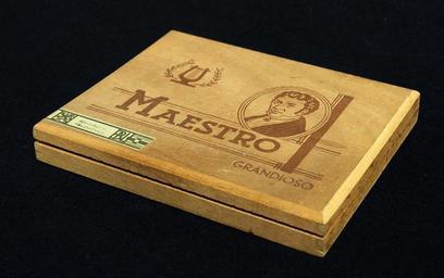 Keywords: Maestro Grandioso sigaren doos, foto2.JPG Very old packaging of a Dutch product that is not produced and/or not sold any more own 2014-03-16 14 02 21 Alf van Beem CC-Zero Trademarked Maestro cigars