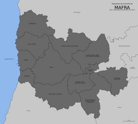 | Keywords: Mafra freguesias 2013.svg pt Freguesias do concelho de Mafra Portugal Fontes Diário da República Reorganização administrativa do território das freguesias Lei n º 11-A/2013 de 28 de janeiro Direcção-Geral do Território DGT Carta Administrativa Oficial de Portugal CAOP versão 2013 Continente http //www dgterritorio pt/ficheiros/cadastro/caop/caop_download/caop_2013_0/caop2013cont_zip_2 en Civil parishes in the municipality of Mafra Portugal Sources Diário da República Administrative reorganization of the civil parishes' territory Law n 11-A/2013 from 28th January Direcção-Geral do Território Official Administrative Chart of Portugal CAOP version 2013 Mainland http //www dgterritorio pt/ficheiros/cadastro/caop/caop_download/caop_2013_0/caop2013cont_zip_2 2013-11-21 02 28 56 own Gazilion cc-zero Uploaded with UploadWizard Mafra Exclaves and enclaves in Portugal SVG maps of freguesias in Portugal |