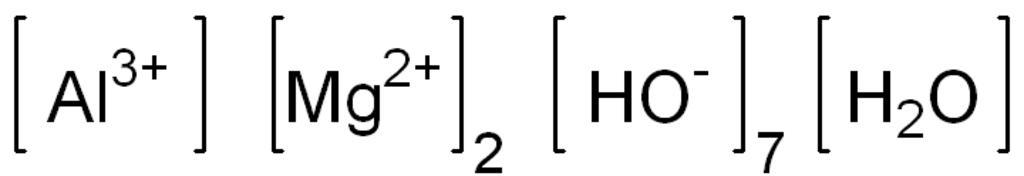 Keywords: Magaldrate.png chemical structure of magaldrate aluminum magnesium hydroxide hydrate own 17 39 27 October 2008 UTC Edgar181 Magnesium compounds Aluminium compounds Hydroxides