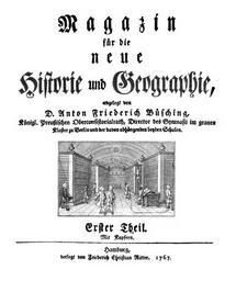 Keywords: Magazin für die neue Historie und Geographie 1767 Titel.jpg Titelseite der Zeitschrift / Title page of the periodical Eigenscan 1767 Diverse PD-old-100 PD-US Magazines in German Magazine covers of Germany