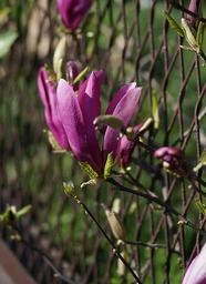 Keywords: magnolia flower magnolia flower spring flourishing violet pink petals leaflet twigs early flowering buds in bloom magnolia branches flower buds closeup plant nature sunny the background