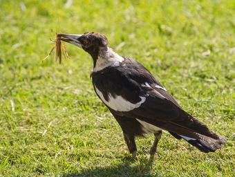 Keywords: magpie australian magpie hungry catch prey insect beak bird food black white wild queensland australia