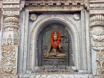Keywords: Mahabodhi temple, Buddha image outside.jpg en Buddha image on the wall of the Mahabodhi temple de Buddha-Bildnis an der Außenwand des Mahabodhi-Tempels own Ineb-2553 2011-10 Bodhgaya Bihar India Mahabodhi Temple Cc-zero