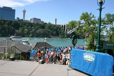 Keywords: american falls blue boat bridal veil ontario park passenger people raincoat ride river