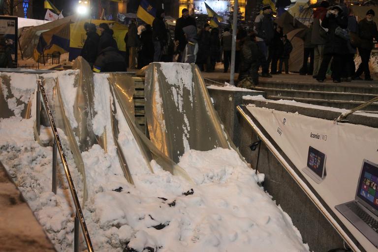 Keywords: Maidan Nezalezhnosti-10-12-2013.JPG uk Київ 10 г удня 2013 Один з виходів з підземного пе еходу на майдані езалежності 2012-12-10 own A1 cc-zero Uploaded with UploadWizard Euromaidan in Kiev December 10 2013
