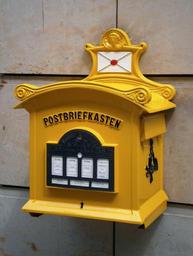 Keywords: mailbox letter boxes post mail box post letters post einwurf send pen pal yellow