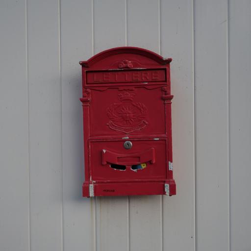 Keywords: mailbox red post email letters message delivery address sheet lacquered italy