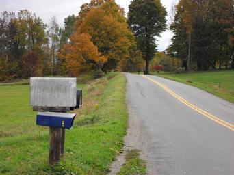 Keywords: mailbox rural mail letters scene nature road country outdoors grass landscape countryside