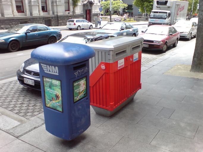 Keywords: Mailboxes Queen Street Auckland.jpg Several mailboxes New Zealand Post and Universal Mail a competitor's on Queen Street Auckland City New Zealand own Own picture 2007-11 Uploader See also Image Postal deregulation New Zealand jpg Photos taken by Ingolfson Mailboxes in New Zealand Red mailboxes Blue mailboxes 2007 in New Zealand Queen Street Auckland |