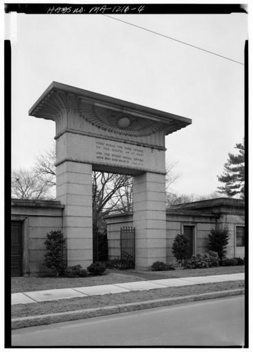 | Keywords: Main gate of Mount Auburn Cemetery - 080157pv.jpg Main gate of Mount Auburn Cemetery 580 Mount Auburn Street Cambridge Massachusetts USA Built 1843; architect Dr Joseph Bigelow These gates replaced an identical original built of wood in 1832 Historic American Buildings Survey HABS Library of Congress Prints and Photograph Division Washington D C 20540 USA Survey number HABS MA-1216 http //hdl loc gov/loc pnp/hhh ma1360 December 12 1987 1967 per HABS record Jack E Boucher Public domain - Origianl work of the US Federal Government Main gate of Mount Auburn Cemetery PD-USGov |