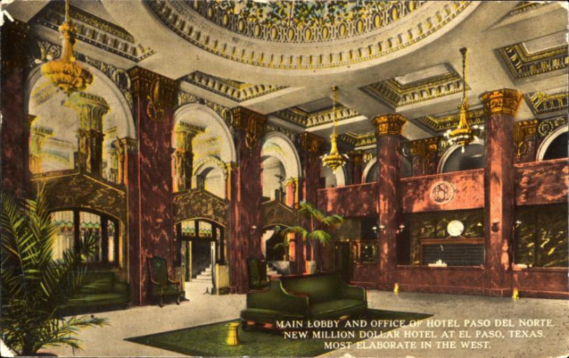 | Keywords: Main Lobby and Office, Hotel Paso Del Norte, El Paso, Texas.jpg  Hotel Paso del Norte ” in El Paso Texas The 1912 Beaux-Arts style building was designed by Trost Trost and is now on the National Register of Historic Places 1913-03-10 The University of Houston Digital Library http //digital lib uh edu Curt Teich Co Custom license marker 2012 03 24 This image is in the public domain and may be used freely If publishing in print electronically or on a website please use the citation Courtesy of Special Collections University of Houston Libraries To order a higher resolution reproduction see http //info lib uh edu/about/campus-libraries-collections/special-collections-archives/request-digital University of Houston Libraries Uploaded with UploadWizard Lobbies room Hotel Paso del Norte Hotels in Texas Hotel Paso del Nortes Buildings in El Paso Texas Hotel Paso del Nortes Interiors of hotels in Texas Hotel Paso del Norte History of El Paso Texas 1913 1913 in Texas Curt Teich Paso del Norte Postcards of El Paso Texas Hotel Paso del Norte Built in Texas in 1912 Hotel Paso del Norte Hotel Paso del Norte Hotel Paso del Nortes Hotels on the National Register of Historic Places in Texas Hotel Paso del Nortes Trost Trost Hotel Paso del Nortes Beaux-Arts architecture in Texas Hotel Paso del Nortes 1913 postcards of the United States |