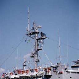 | Keywords: Main mast of USS Spiegel Grove (LSD-32) in 1988.jpeg A view of the main mast and antenna rigging aboard the U S Navy dock landing ship USS Spiegel Grove LSD-32 during an open house at Baltimore Maryland USA in 1988 The Thomaston-class dock landing ships were the last active U S Navy ships equipped with the AN/SPS-6 radar 6442896 1988-10-09 W Greg Hendrix USN PD-USGov USS Spiegel Grove LSD-32 AN/SPS-6 AN/SPS-10 | ||||