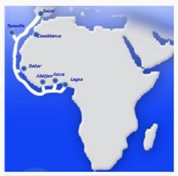 Keywords: Main one phase 1.png en Main One cable system showing the plan for phase one of the project own Ggeldenhuys 2010-07-05 Maps of submarine communication cables West Africa Maps of Africa