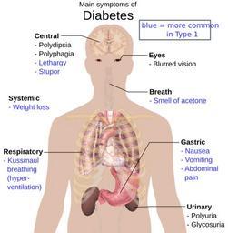 Keywords: Main symptoms of diabetes.svg diabetes See Wikipedia Diabetes Signs_and_symptoms for references To discuss image please see Template talk Human body diagrams es Principales síntomas de la Diabetes Azul más común en Tipo 1 Central Polidipsia Polifagia Letargia Estupor Sistémico Pérdida de peso Respiratorio Respiración de Kussmaul hiperventilación Ojos Visión borrosa Aliento Fetor cetónico Gástrico Náuseas Vómitos Dolor abdominal Urinario Poliuria Glicosuria See above All used images are in public domain Mikael Häggström 2009-02-27 translation possible Other versions <gallery> File Main symptoms of diabetes hr svg hrvatski Main symptoms of diabetes es svg español spanish </gallery> Human body diagrams SVG diagrams of the adult male human body by Mikael Häggström Diabetes mellitus