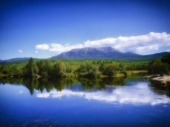 Keywords: maine mount katahdin mountains nature outside sky clouds lake water reflections forest trees summer
