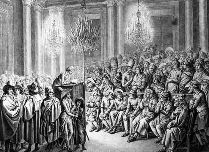 | Keywords: Mainzjakobiner.jpg de Versammlung des Mainzer Jakobinerclubs im ehemaligen kurfürstlichen Schloss Friedrich Georg Pape trug seine Thesen zum Verhältnis der französischen Verfassung zur katholischen Kirche dort am 25 November 1792 vor Lavierte Federzeichnung 44 3x57 9cm Mainz Landesmuseum Mainz fr Une séance au club des Jacobins mayençais en 1792 dans la Château des Princes-Électeurs à Mayence Frederic-Georges Pape à discours sur la compatibilité de la nouvelle constitution française avec le catholicisme le 25 novembre 1792; Musée du Land Mayence Deutschland und die Französische Revolution 1789/1989 Eine Ausstellung des Goethe-Instituts zum Jubiläum des welthistorischen Ereignisses Cantz Stuttgart 1989 ISBN 3-89322-019-4 p 153 or http //www mainz de/WGAPublisher/online/html/default/mkuz-5t3hvj de html 1792 Johann Jacob Hoch 1750-1829 PD-old-100 1792 in Mainz Jacobin Club Landesmuseum Mainz |