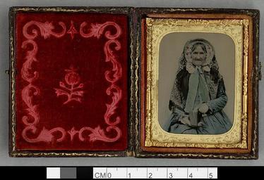 | Keywords: cymru wales llyfrgell genedlaethol cymru llyfrgellgenedlaetholcymru national library of wales nationallibraryofwales women bonnets ambrotypes portrait photographs portraitphotographs bornbefore1800 1855 woman portrait case frame picture frame Dyddiad/Date: [1855] Cyfrwng/Medium: Ambrotype, handcoloured Maint/Dimensions: 74 x 61mm, 51 x 38 mm visible image area Cyfeiriad/Reference: fmc00039 (pg4393/21) Rhif cofnod / Record no.: 4444097 Ceir mwy o ffotograffau a rhagor o wybodaeth ar wefan y Llyfrgell Genedlaethol. More images and further information can be found on the National Library of Wales' website. Dyddiad/Date: [1855] Cyfrwng/Medium: Ambrotype, handcoloured Maint/Dimensions: 74 x 61mm, 51 x 38 mm visible image area Cyfeiriad/Reference: fmc00039 (pg4393/21) Rhif cofnod / Record no.: 4444097 Ceir mwy o ffotograffau a rhagor o wybodaeth ar wefan y Llyfrgell Genedlaethol. More images and further information can be found on the National Library of Wales' website. <b>Dyddiad/Date:</b> [1855]