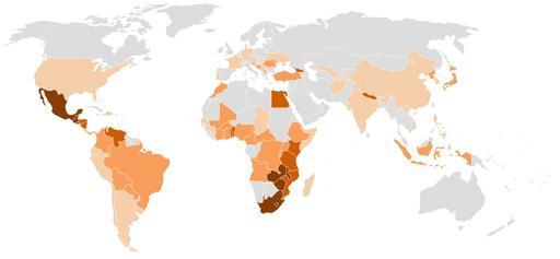 | Keywords: Maize food average per capita.png Maize Average per capita between 1995-1997 kg/yr <ref>http //www cimmyt org/Research/economics/map/facts_trends/maizeft9900/pdfs/maizeft9900_Part4 pdf According to 2000 CIMMYT World Maize Facts and Trends </ref> <p><span style color 893e05 > –ˆ –ˆ</span> more than 100 kg/yr</p> <p><span style color d05c04 > –ˆ –ˆ</span> from 50 to 99 kg/yr</p> <p><span style color fa9f5b > –ˆ –ˆ</span> from 19 to 49 kg/yr</p> <p><span style color f5cfac > –ˆ –ˆ</span> from 6 to 18 kg/yr</p> <p><span style color dddddd > –ˆ –ˆ </span>5 or less<div style font-size 90 ><references /></div> 2006-04-04 own assumed Pixeltoo Distributional maps of the world Maize-based food |