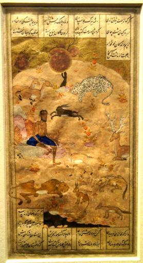 | Keywords: Majnun in the Desert among the Animals, unknown artist, Iran, c. 1500 AD, page from unidentified manuscript of the Khamsa of Nizami, opaque watercolors, ink, and gold on paper - Cincinnati Art Museum - DSC04209.JPG  en Exhibit in the Cincinnati Art Museum Cincinnati Ohio USA This artwork is in the public domain because the artist died more than 70 years ago Photography was permitted in the museum without restriction 2013-05-14 11 44 12 own Daderot cc-zero Near Eastern paintings in the Cincinnati Art Museum Uploaded with UploadWizard Leyli and Majnun Nizami Ganjavi Safavid paintings |