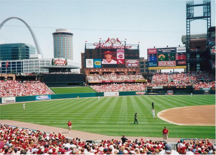 Keywords: major league baseball baseball stadium game park field fun saint louis cardinals crowd players athlete ball sports redbirds cards busch