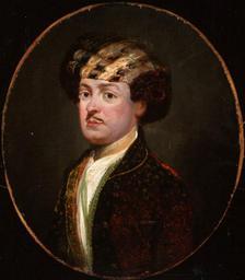 | Keywords: Major William Davy.jpg Artwork en Major William Davy Bengal Army Persian Secretary to the Governor-General in Persian dress 1781 c Davy was one of the East India Company's greatest scholars of Persian the Mughal language of government and culture He worked as the Persian Secretary of Warren Hastings Governor General of Bengal 1773-1785 As well as translating official papers he also translated many of the great works of Mughal scholarship He died in 1784 during a voyage back to Britain NAM Accession Number NAM 1981-01-22-1 Copyright/Ownership National Army Museum London Location National Army Museum Study Collection 1780-1781 c Oil on board Institution National Army Museum http //www nam ac uk/online-collection/detail php q searchType 3Dsimple 26resultsDisplay 3Dlist 26simpleText 3Dmughal pos 0 total 11 page 1 acc 1981-01-22-1 other versions PD-old-100 Tilly Kettle National Army Museum United Kingdom 1781 portrait paintings from Great Britain Male 18th-century oil on panel paintings in the United Kingdom 18th-century oil oval portraits of men at bust length 1781 18th-century portrait paintings in the United Kingdom 1781 Bengali people Small images Uploaded with UploadWizard |
