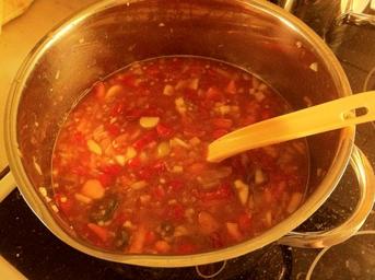 Keywords: food This year's harvest turning into chili sauce. Recipe: 1 l assorted chili fruits (Habanero Sudden Death, Inca Berry, Bishop's Hat Ubatuba Campuci, Condom Paprika, Jalapeno, Biquinho Pepper) both ripe and unripe 1 l onions 1 l peeled tomatoes 1 large garlic bulb 2 dl brown sugar 2 dl vinegar 2 dl Aberlour a'bunadh single malt whisky 2 lime fruits (the juice) 3 tsp sea salt Everything finely chopped into a large pot lined with some olive oil. Simmer until ingredients are soft. Blend in a processor or with an immersion blender. Continue simmering until reduced to desired thickness. This recipe will yield about 2.5 liters of chili sauce. Store in refrigerator in sterilized cans. This year's harvest turning into chili sauce. Recipe: 1 l assorted chili fruits (Habanero Sudden Death, Inca Berry, Bishop's Hat Ubatuba Campuci, Condom Paprika, Jalapeno, Biquinho Pepper) both ripe and unripe 1 l onions 1 l peeled tomatoes 1 large garlic bulb 2 dl brown sugar 2 dl vinegar 2 dl Aberlour a'bunadh single malt whisky 2 lime fruits (the juice) 3 tsp sea salt Everything finely chopped into a large pot lined with some olive oil. Simmer until ingredients are soft. Blend in a processor or with an immersion blender. Continue simmering until reduced to desired thickness. This recipe will yield about 2.5 liters of chili sauce. Store in refrigerator in sterilized cans.