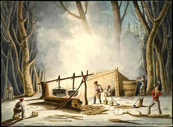 | Keywords: Making Maple Sugar, Lower Canada, 1837.jpg en Making Maple Sugar Lower Canada watercolour over pencil with gum arabic on wove paper 58 300 x 43 000 cm fr Préparation du sucre d'érable Bas-Canada aquarelle 1837 http //collectionscanada gc ca/pam_archives/index php fuseaction genitem displayItem lang eng rec_nbr 2834638 rec_nbr_list 2834638 2946254 2894896 collectionscanada gc ca Philip John Bainbridge other versions PD-100 Maple sugar production Canada in the 1830s Philip John Bainbridge Uploaded with UploadWizard Scanned with ScanView ScanMate F6 |