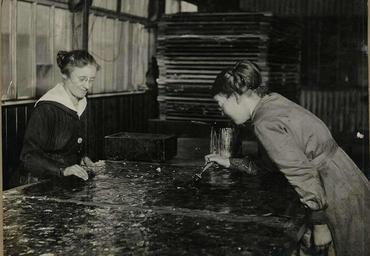 | Keywords: ww1 firstworldwar war worlife1915 parsons munitions women female labourers work factory heaton newcastle industrial heritage industrialheritage black and white photograph blackandwhitephotograph 'women labourers' womenlabourers shields road shieldsroad production micante sheets micantesheets 1914 - 18 191418 women of the war womenofthewar charles parsons charlesparsons rachel parsons rachelparsons war effort wareffort parsons' works parsonsworks digital image digitalimage paint brush paintbrush dress crease hair glasses attentive standing table button blouse hand finger pile sheets wall wire scratch grain beam box wood painting blur workbench smile interesting black and white These images belong to the Parsons’ ‘Women Labourers’ photograph album, taken at Parsons’ Works on Shields Road during the First World War. (TWAM ref: 2402) The factory was founded by engineer Charles Parsons, best known for his invention of the steam turbine. In 1914, with the outbreak of war, Parsons’ daughter Rachel, one of the first three women to study engineering at Cambridge, replaced her brother on the board of directors, and took on a role in the training department of the Ministry of Munitions, supporting the increasing amount of women taking on jobs in industry to support the war effort. More information about Rachel Parsons and Parsons’ Works can be found in Great North Greats a guest post by David Wright. (copyright) We’re happy for you to share these digital images within the spirit of The Commons. Please cite 'Tyne & Wear Archives & Museums' when reusing. Certain restrictions on high quality reproductions and commercial use of the original physical version apply though; if you're unsure please email archives@twmuseums.org.uk These images belong to the Parsons’ ‘Women Labourers’ photograph album, taken at Parsons’ Works on Shields Road during the First World War. (TWAM ref: 2402) The factory was founded by engineer Charles Parsons, best known for his invention of the steam turbine. In 1914, with the outbreak of war, Parsons’ daughter Rachel, one of the first three women to study engineering at Cambridge, replaced her brother on the board of directors, and took on a role in the training department of the Ministry of Munitions, supporting the increasing amount of women taking on jobs in industry to support the war effort. More information about Rachel Parsons and Parsons’ Works can be found in Great North Greats a guest post by David Wright. (copyright) We’re happy for you to share these digital images within the spirit of The Commons. Please cite 'Tyne & Wear Archives & Museums' when reusing. Certain restrictions on high quality reproductions and commercial use of the original physical version apply though; if you're unsure please email archives@twmuseums.org.uk |
